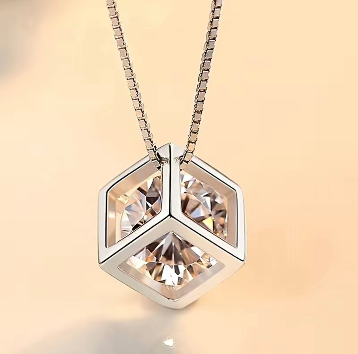 Hollow Cubic Shape Pendant Necklace Shiny Zircon